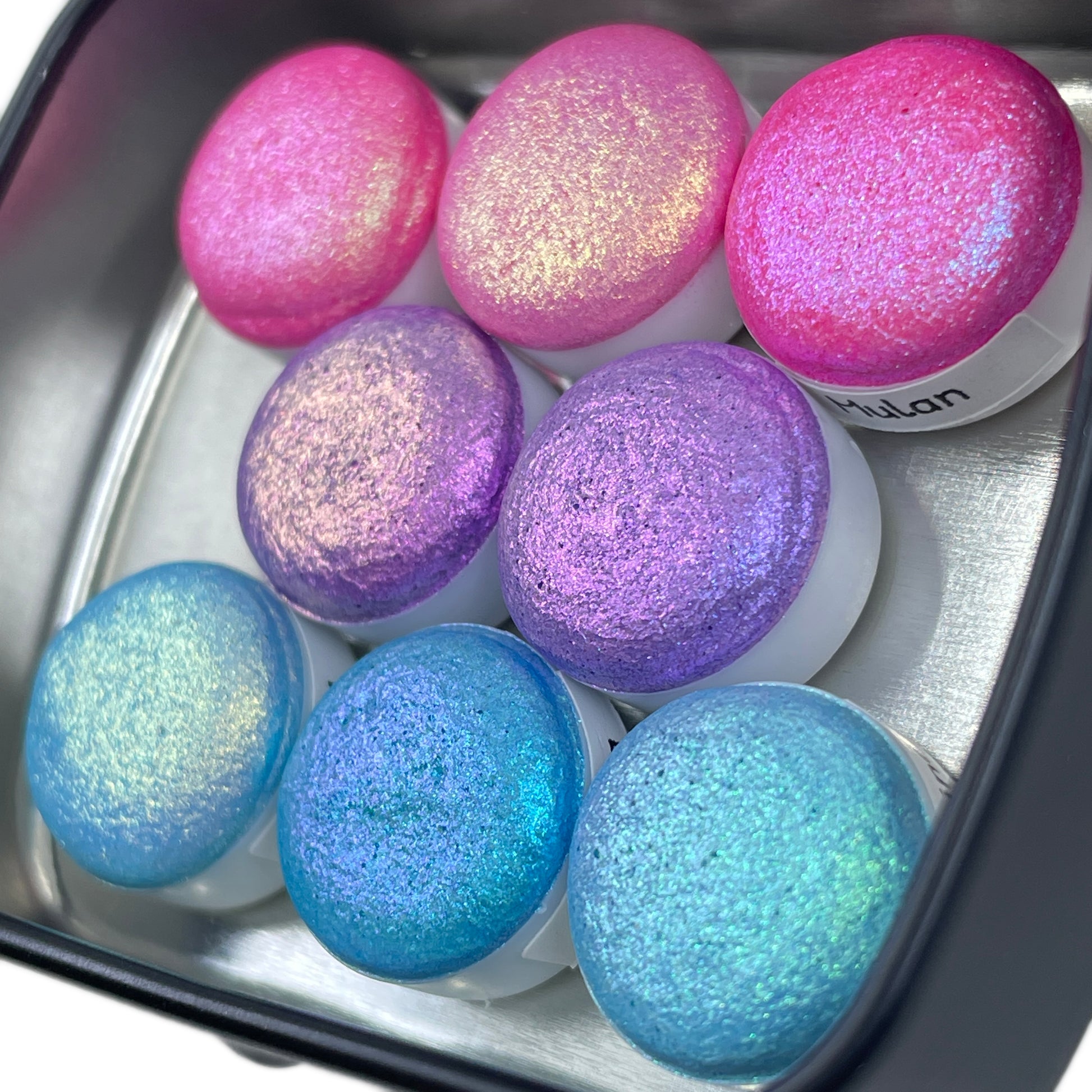 Product Information: Handmade watercolor paint made with cosmetics-grade Pigments, Flakes, and glitters.