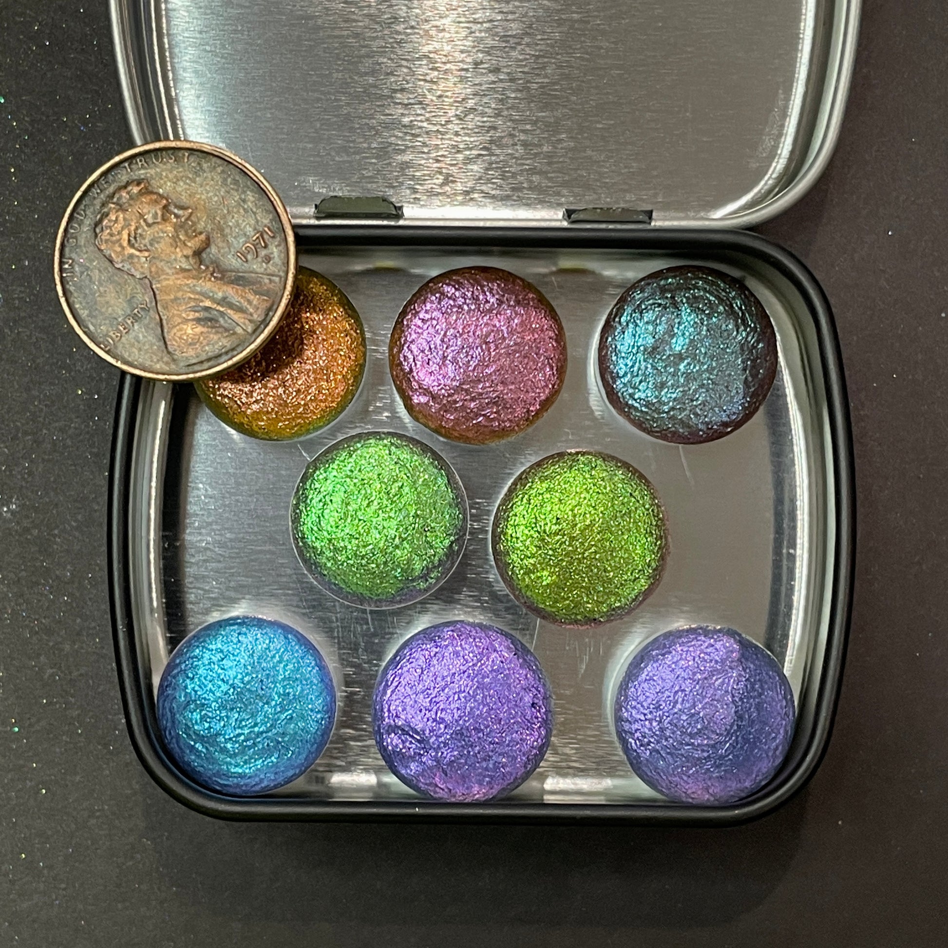 Product Information: Handmade watercolor paint made with cosmetics-grade Pigments, Flakes, and glitters.