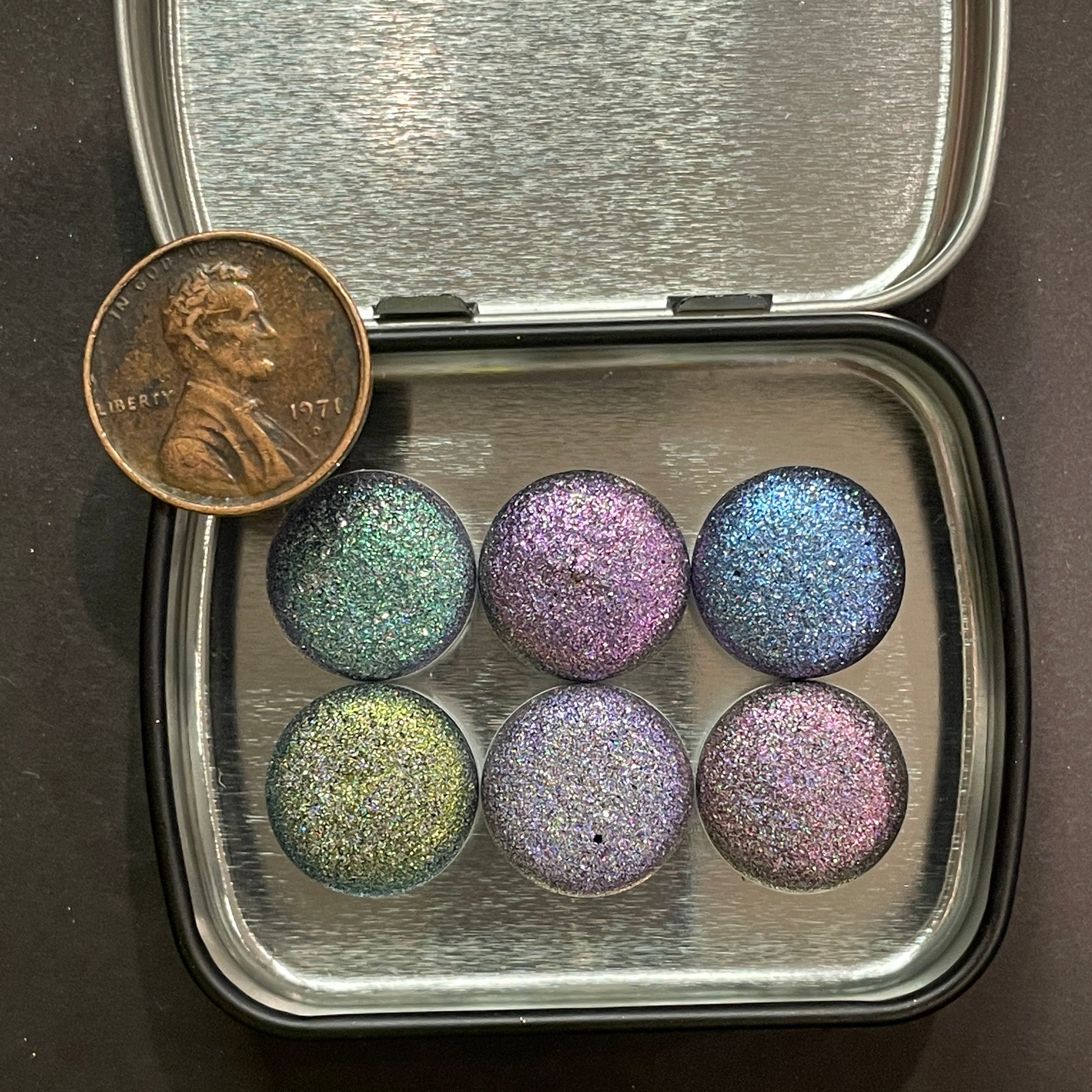 Button Night Series set Handmade Glittery Hologram shimmer watercolor Paint by iuilewatercolors