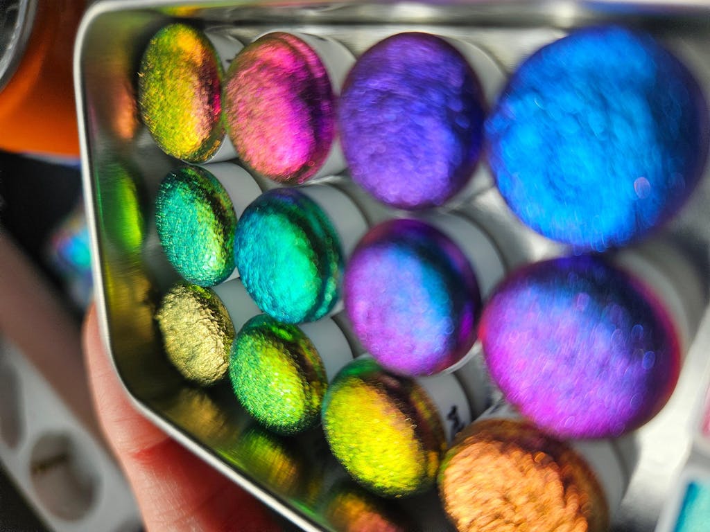 Product Information: Handmade watercolor paint made with cosmetics-grade Pigments, Flakes, and glitters.
