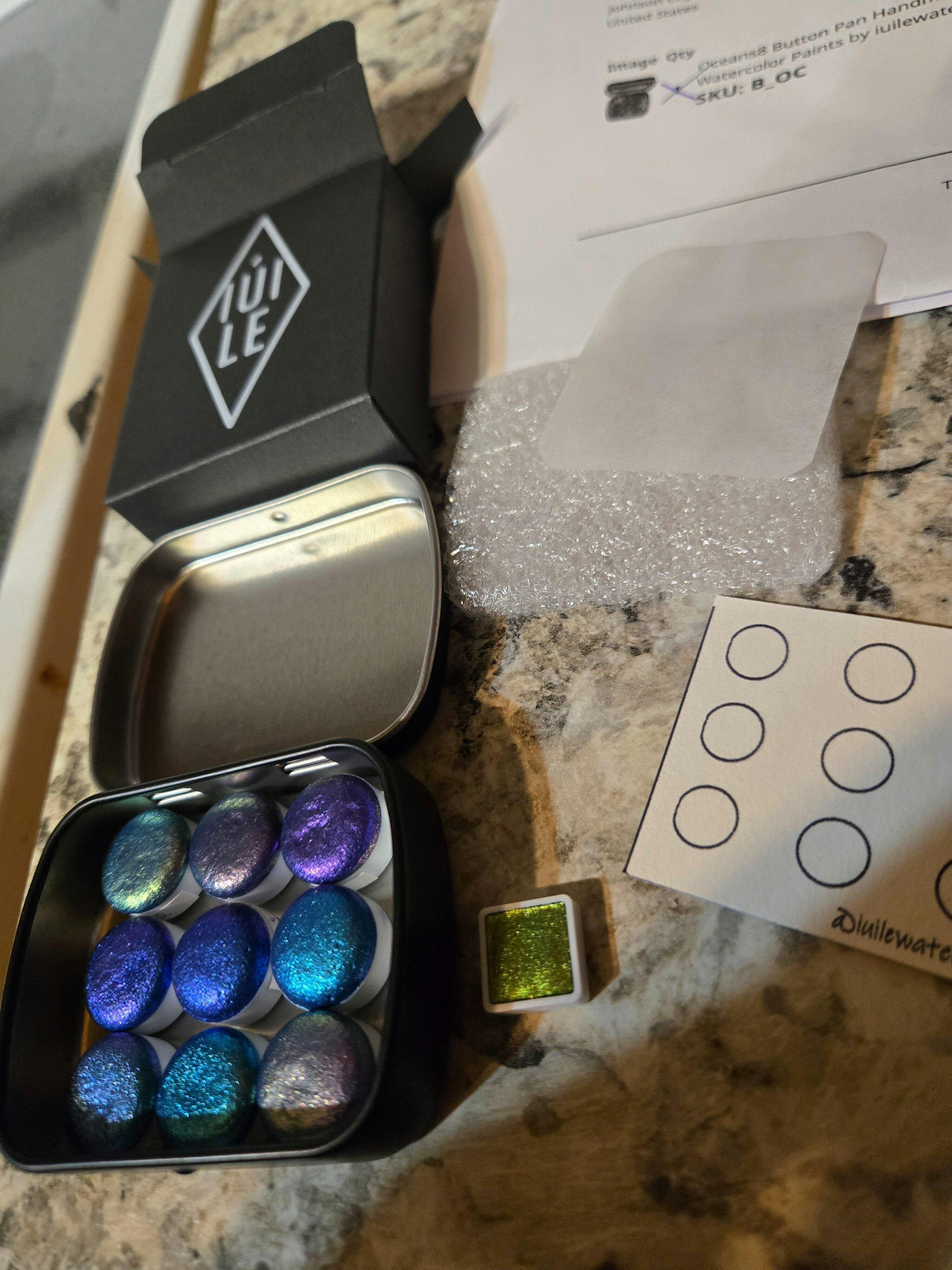 Oceans8 Button Pan Handmade Color Shift Aurora Shimmer Metallic Chameleon Watercolor Paints by iuilewatercolors