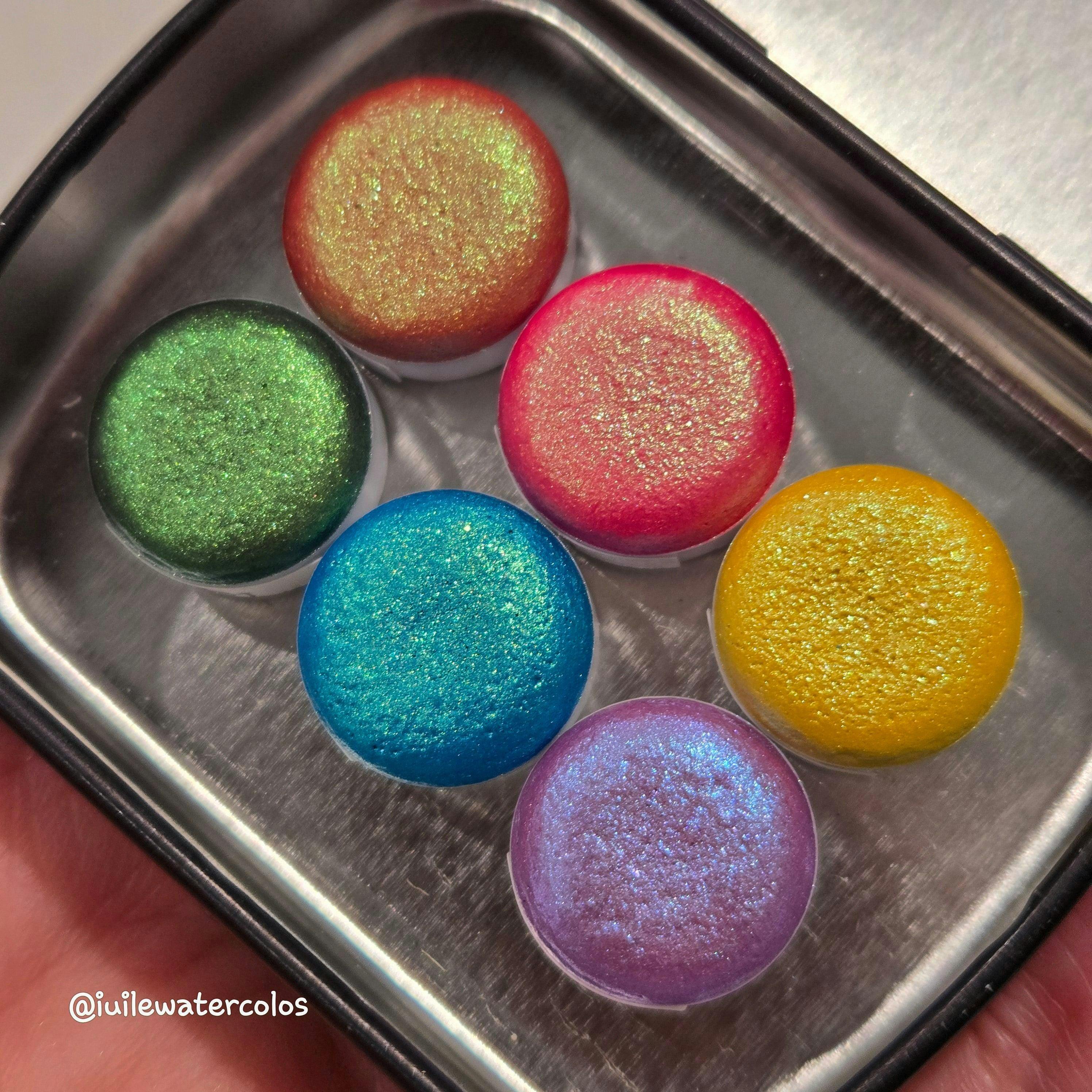 Handmade watercolor paint made with cosmetics-grade Pigments, Flakes, and glitters.