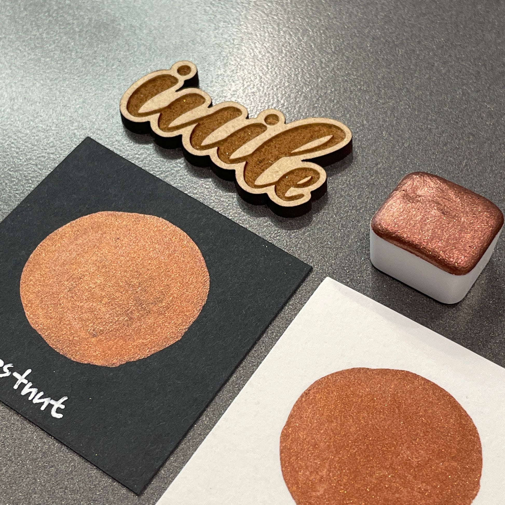 Chestnut Brown Shimmer Metallic Watercolor Paints Half Pans Autumn2022