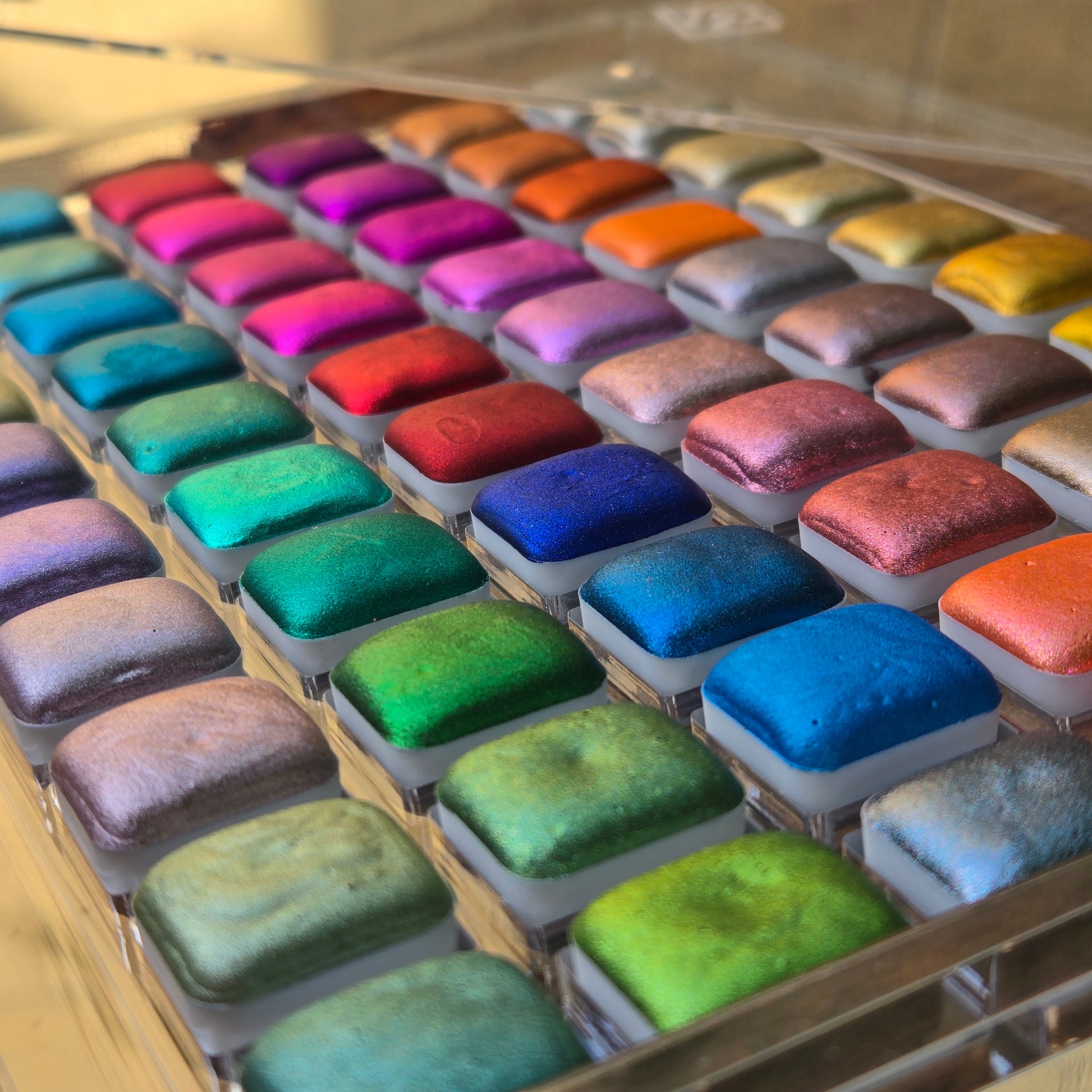 Christmas 60 set with Acrylic case Handmade Shine Chrome Shimmer Watercolor Paints
