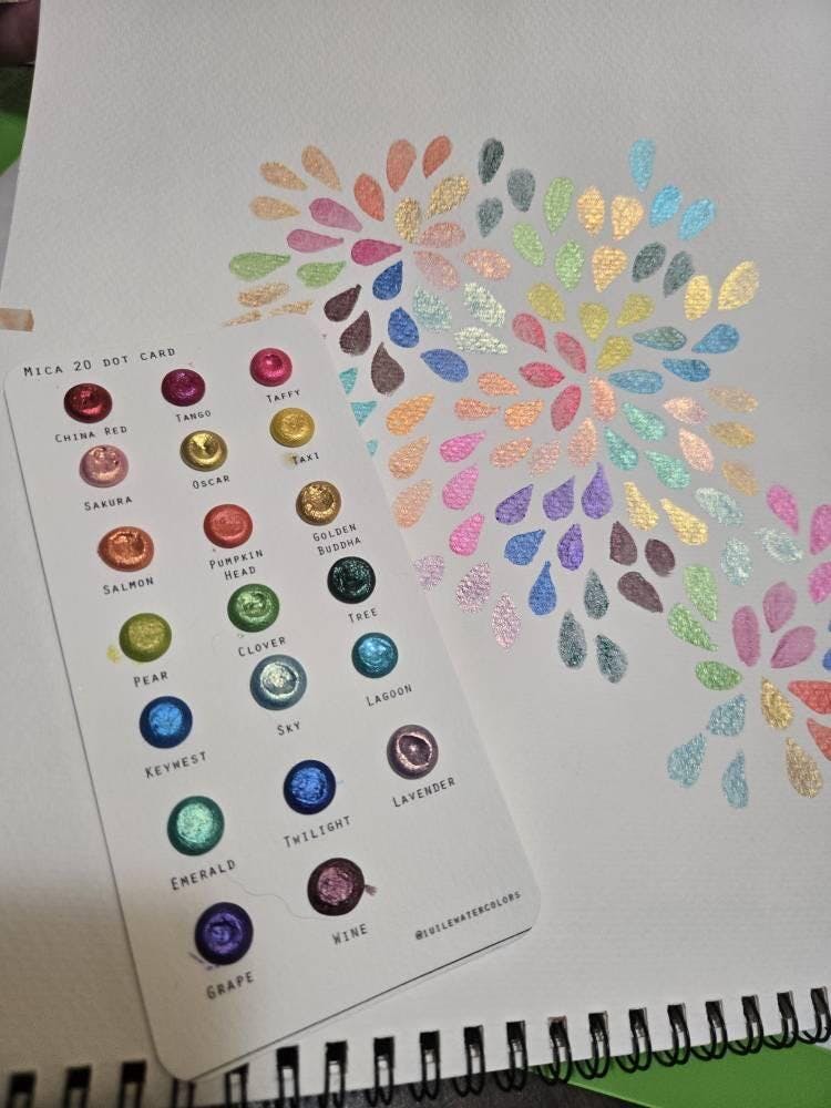 Mica 20 Dot Card Tester Sampler Handmade Color Shift Aurora Shimmer Metallic Chameleon Watercolor Paints by iuilewatercolors