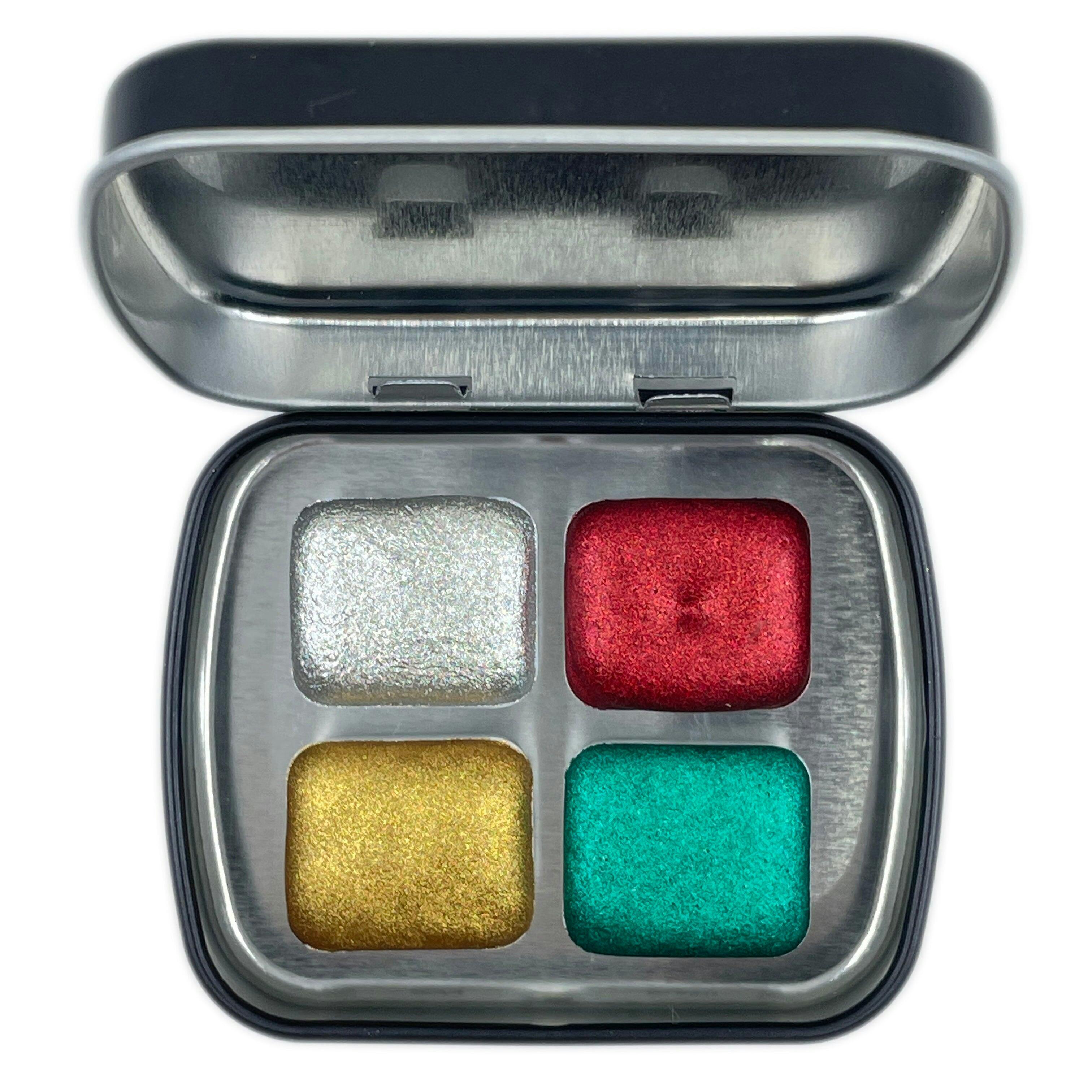 Merry Christmas set 4 Half Pan Handmade Chrome Shimmer Metallic Watercolor Paints by iuilewatercolors