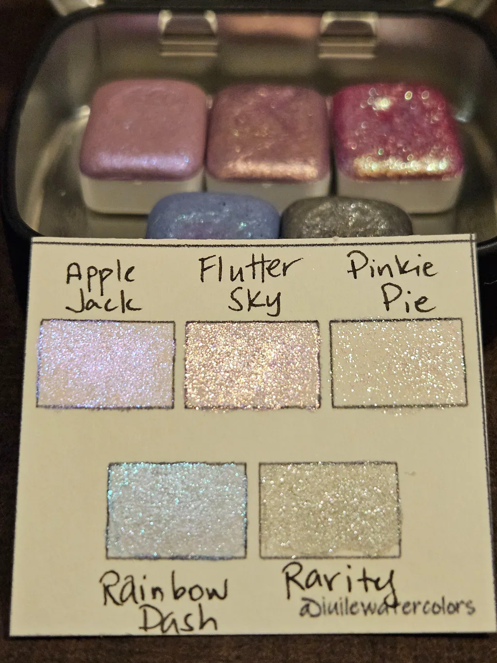 Last Chance! 5 Unicorn Set mica watercolor paints quarter pans in tin case