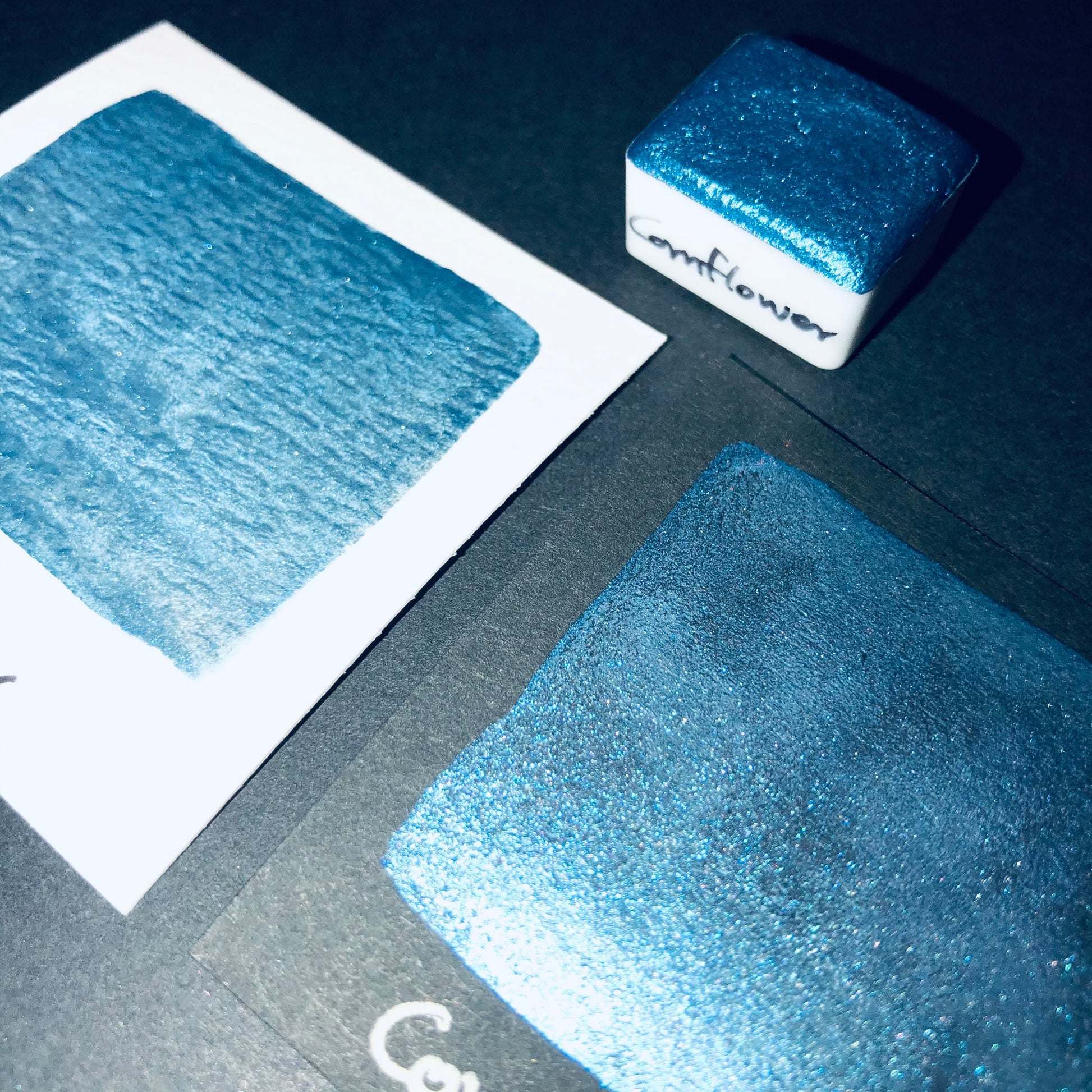 Cornflower Blue Handmade Metallic Shimmer Watercolor Paint Half Pan