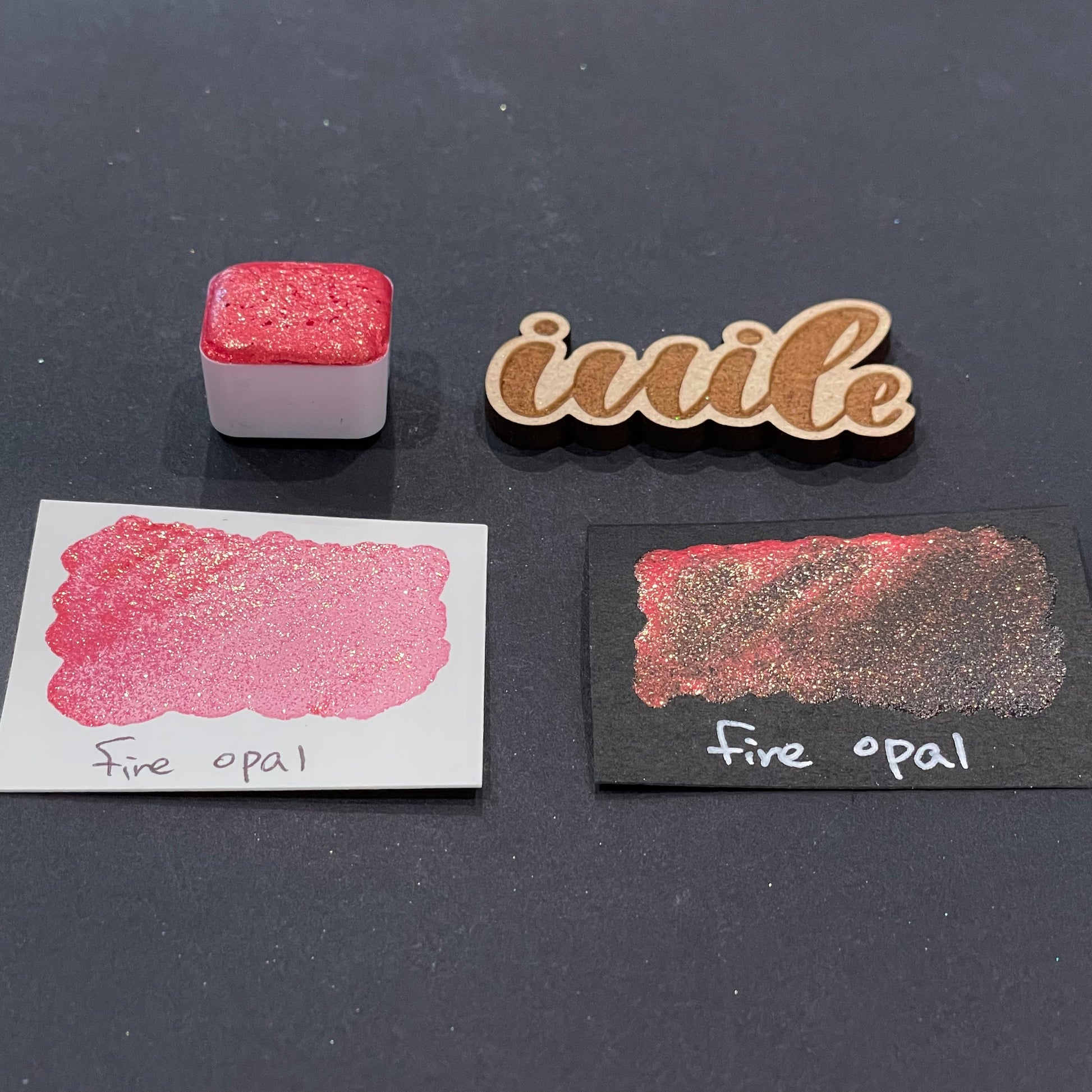 Last Chance! Fire Opal red Half pan Bling Bling Handmade shimmer watercolor paints