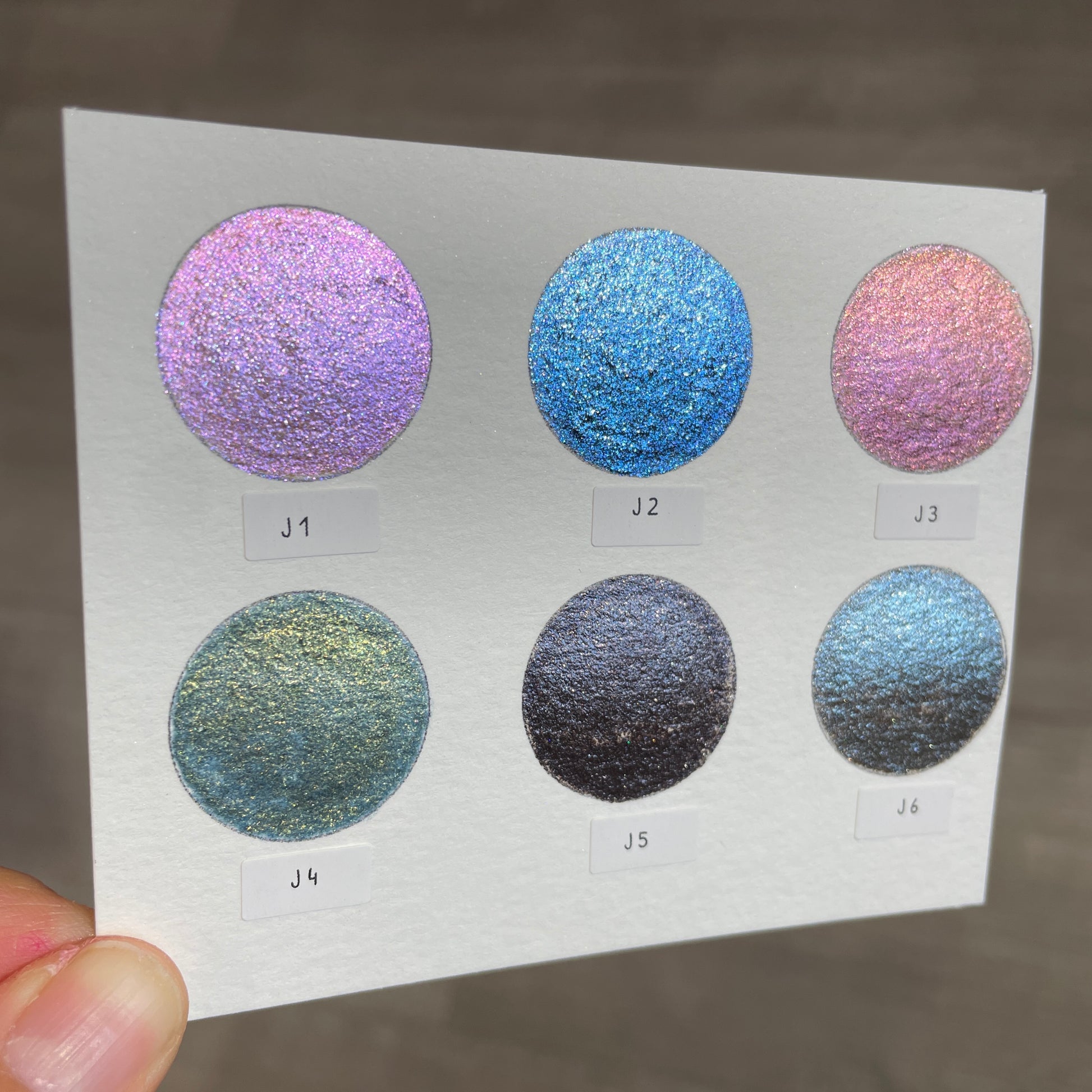 Handmade watercolor paint made with cosmetics-grade Pigments, Flakes, and glitters.