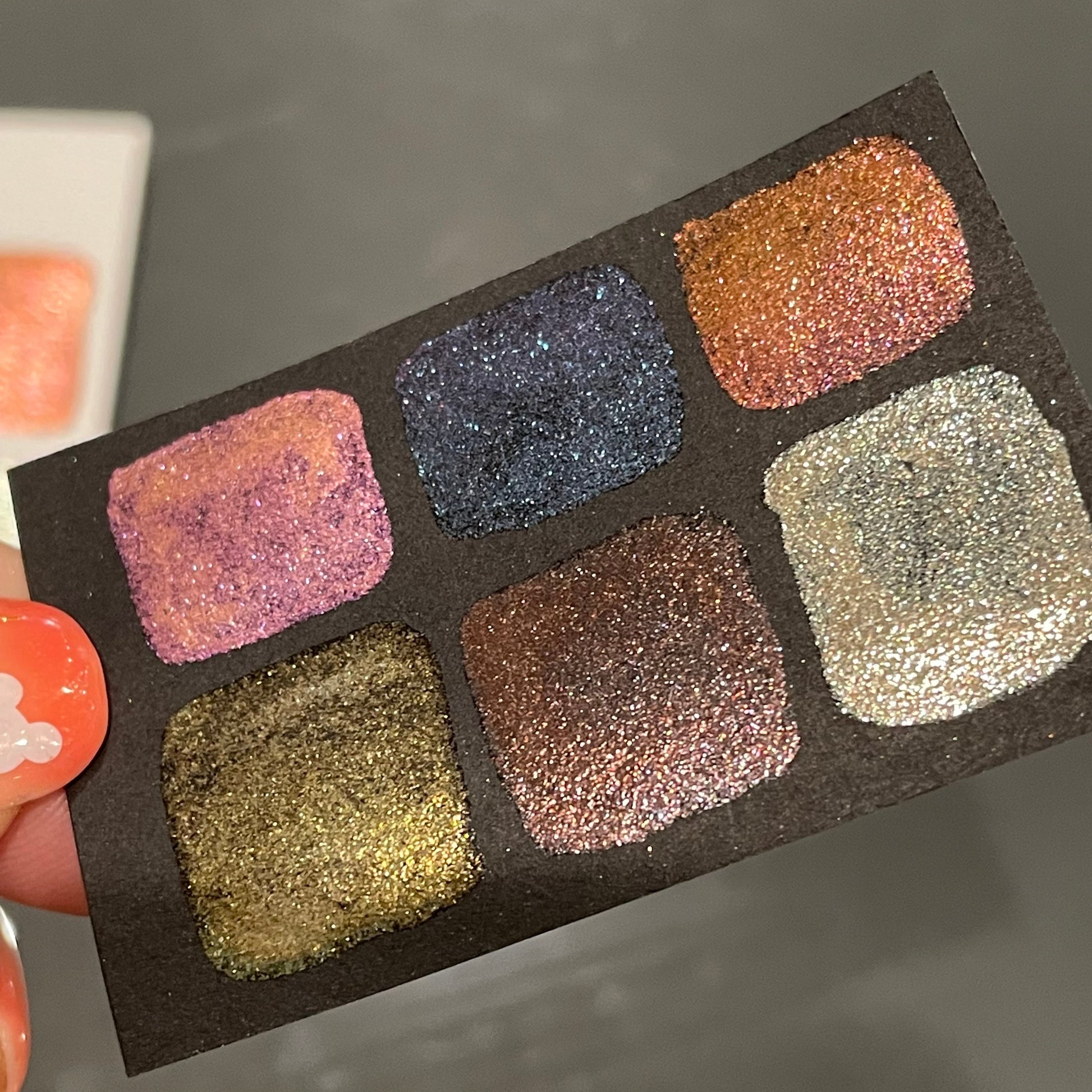 Product Information: Handmade watercolor paint made with cosmetics-grade Pigments, Flakes, and glitters.