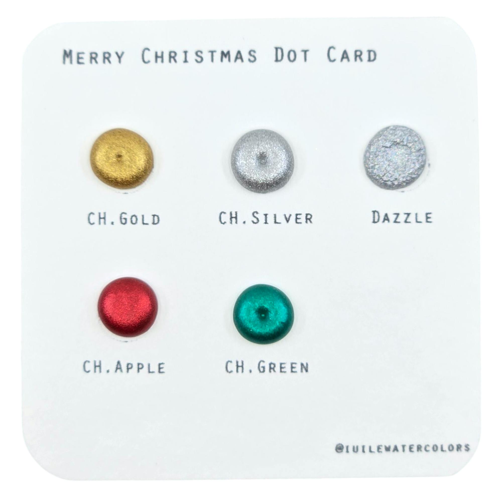 Merry Christmas Dot Card Handmade Chrome Shimmer Watercolor Paints by iuilewatercolors