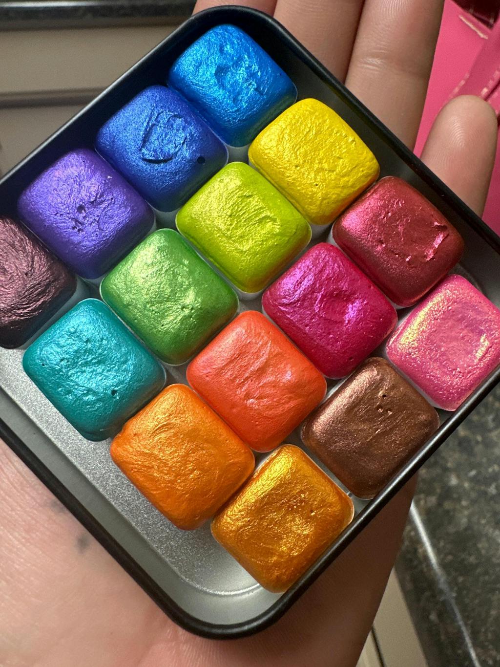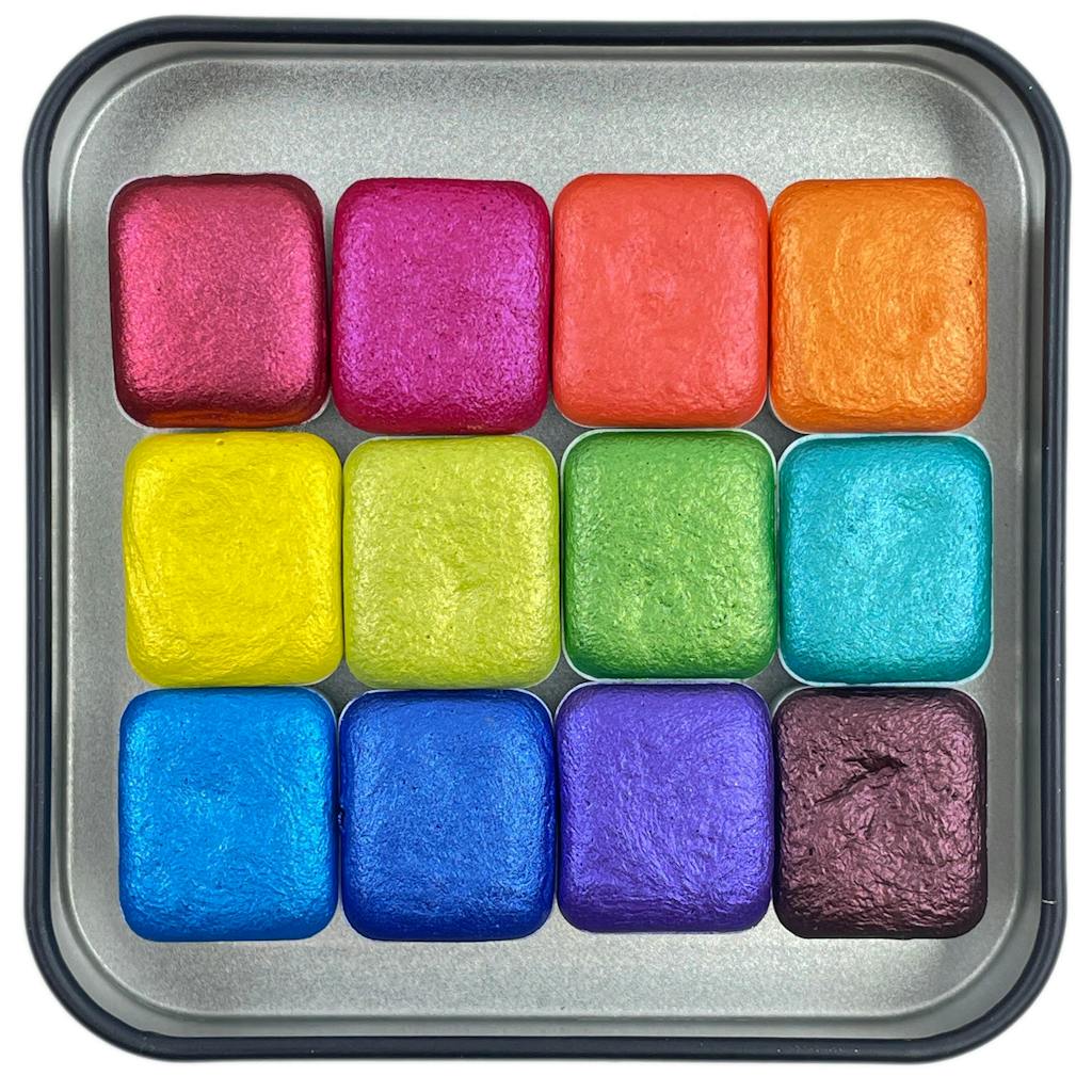 last chance! Mica H12 E set Handmade Shimmer Watercolor Paint half pans