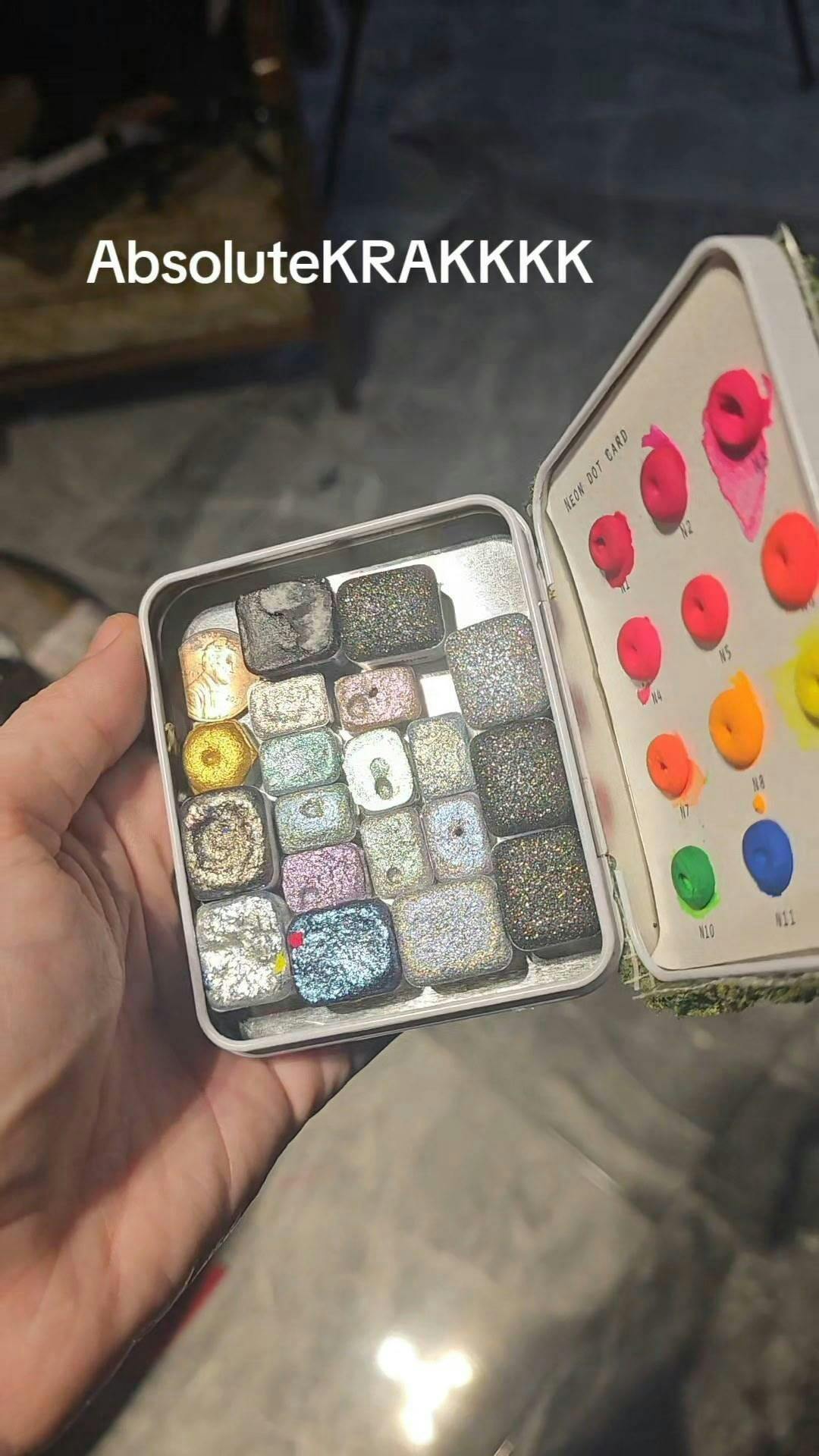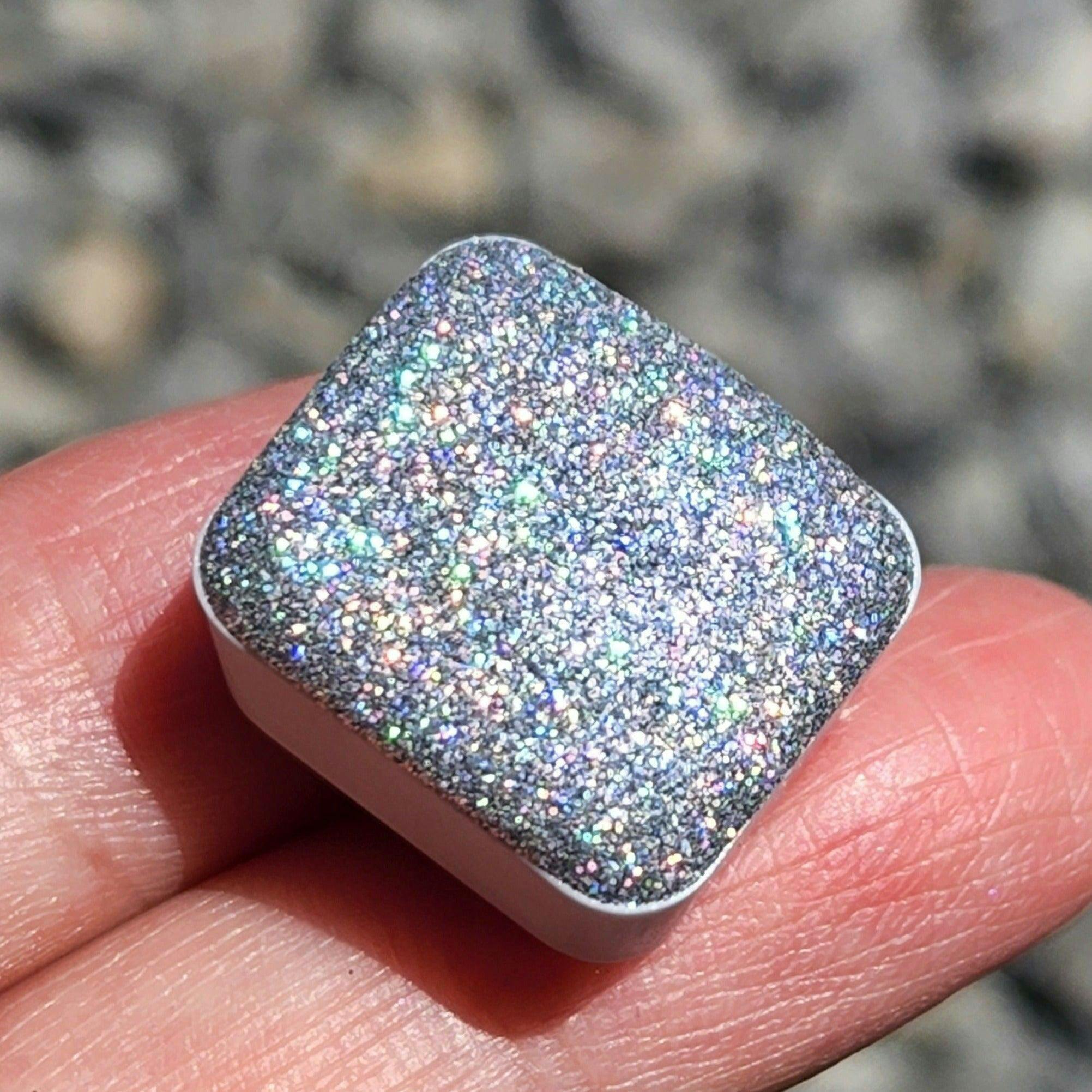 Handmade watercolor paint made with cosmetics-grade glitters.