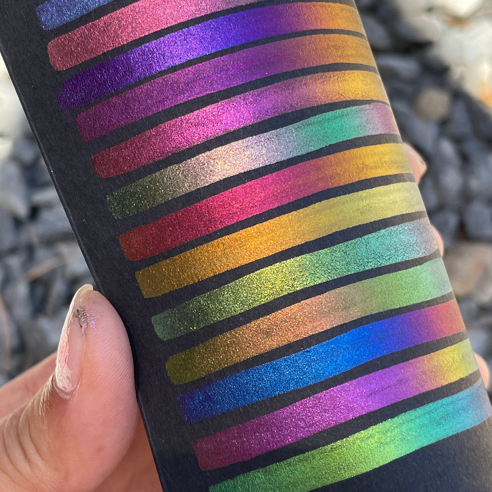 Product Information: Handmade watercolor paint made with cosmetics-grade Pigments, Flakes, and glitters.