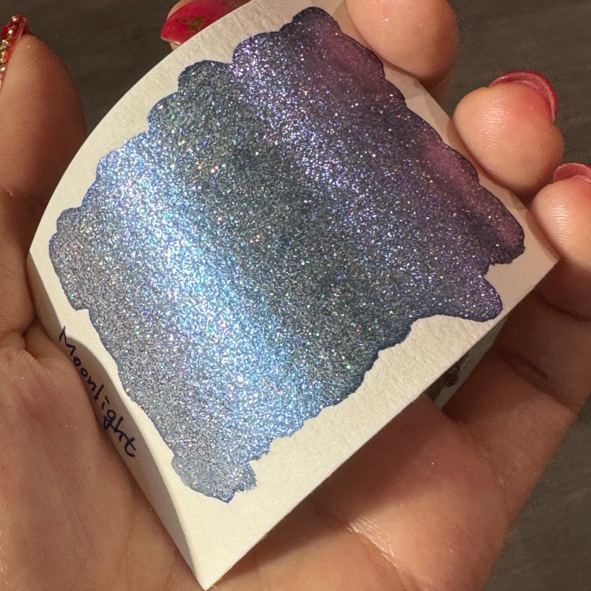Half Moonlight Night Series Handmade Glittery Hologram shimmer watercolor Paint by iuilewatercolors