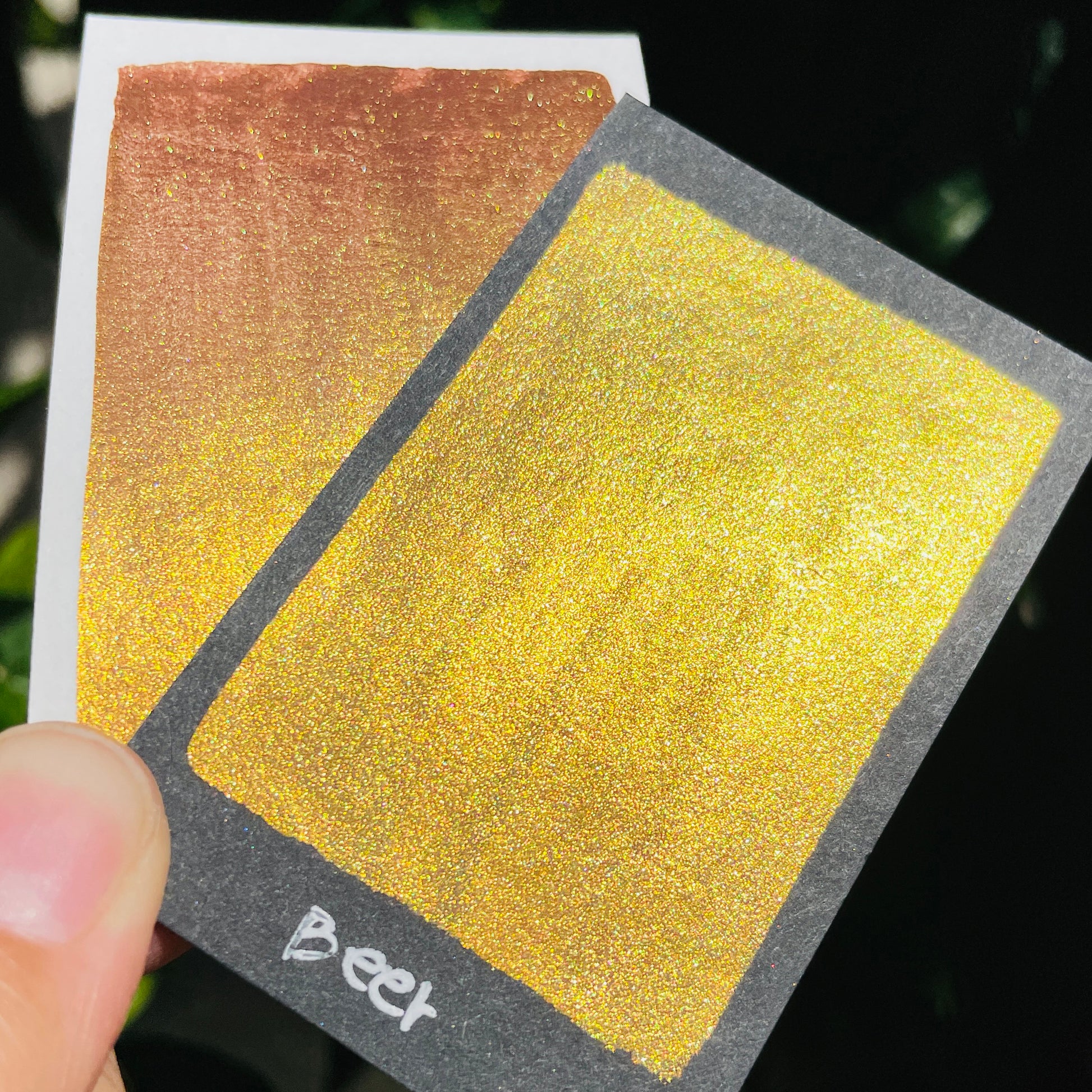 Beer gold Fell in love handmade shimmer mica watercolor paints Half pans