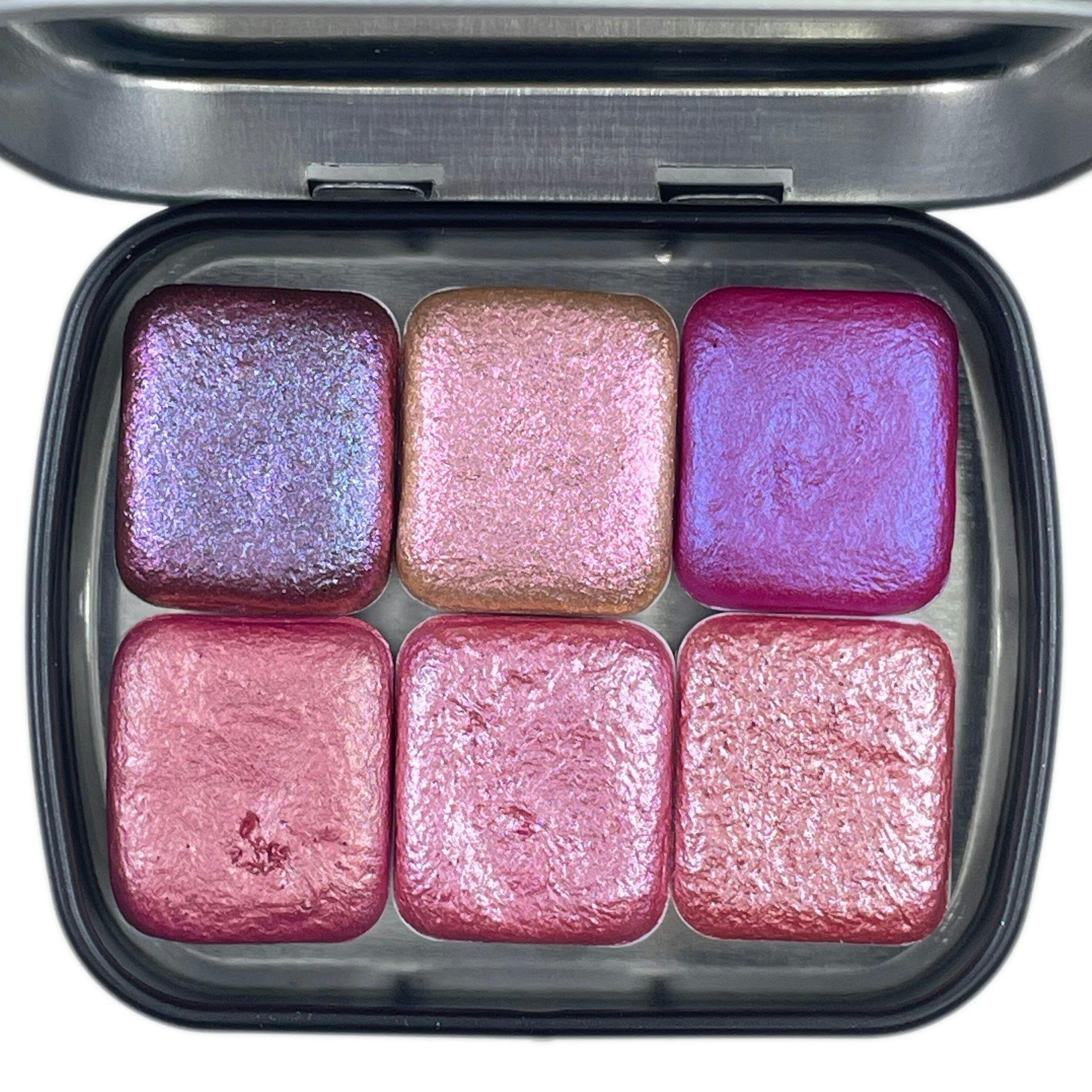 Pink set Handmade Shimmer Metallic Chameleon Colorshift Watercolor Paint Half By iuilewatercolors