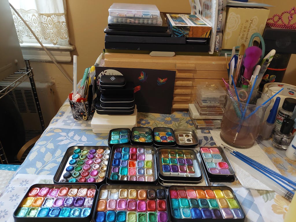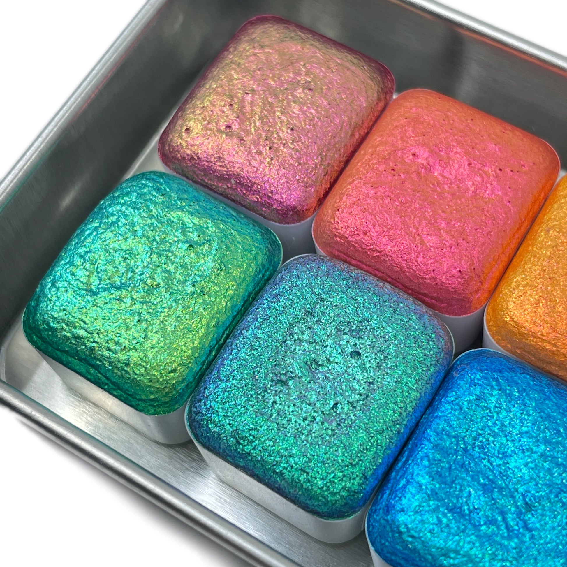 Product Information: Handmade watercolor paint made with cosmetics-grade Pigments, Flakes, and glitters.