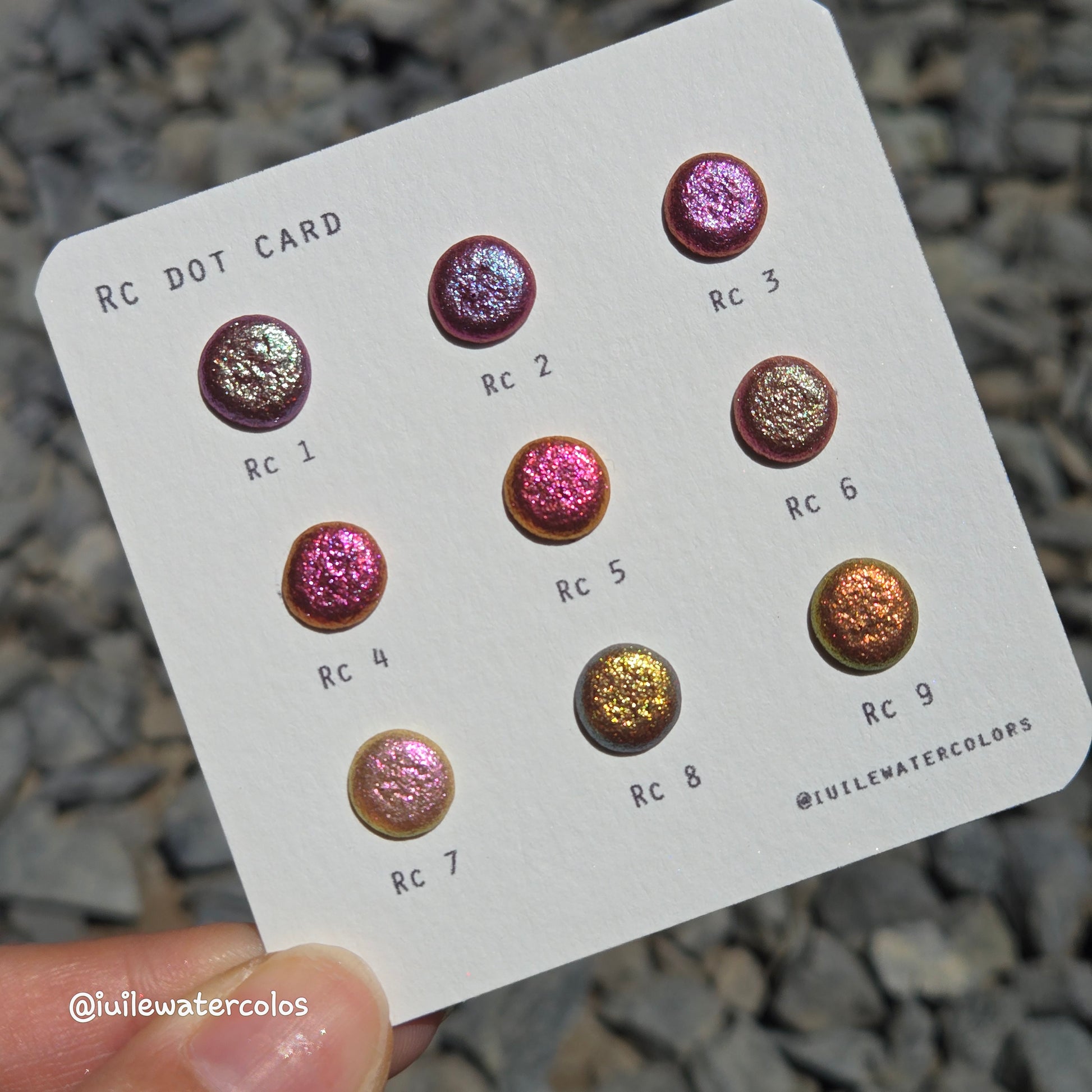 RC Dot Card Tester Sampler Watercolor Shimmer Glittery Paints