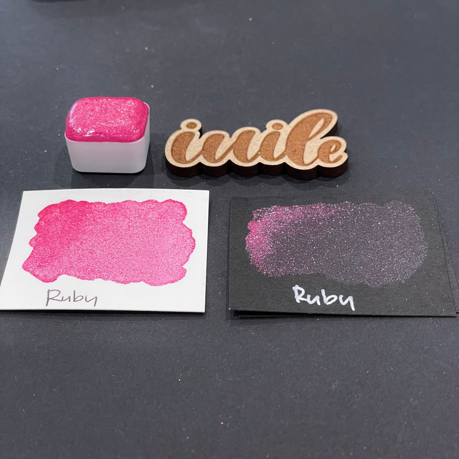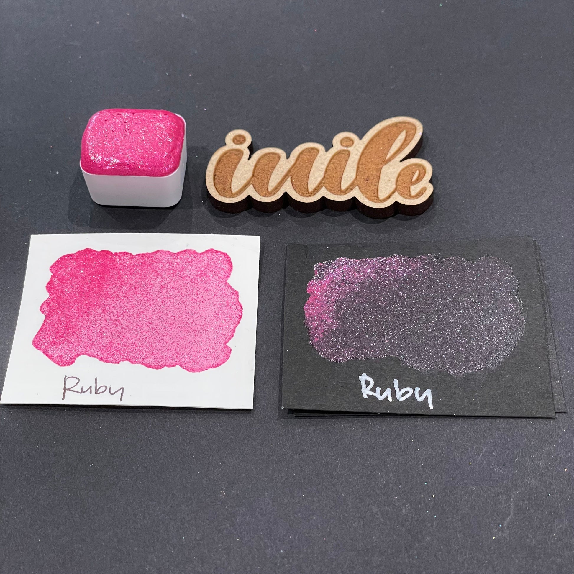 Last Chance! Ruby pink Half pan Bling Bling Handmade shimmer watercolor paints