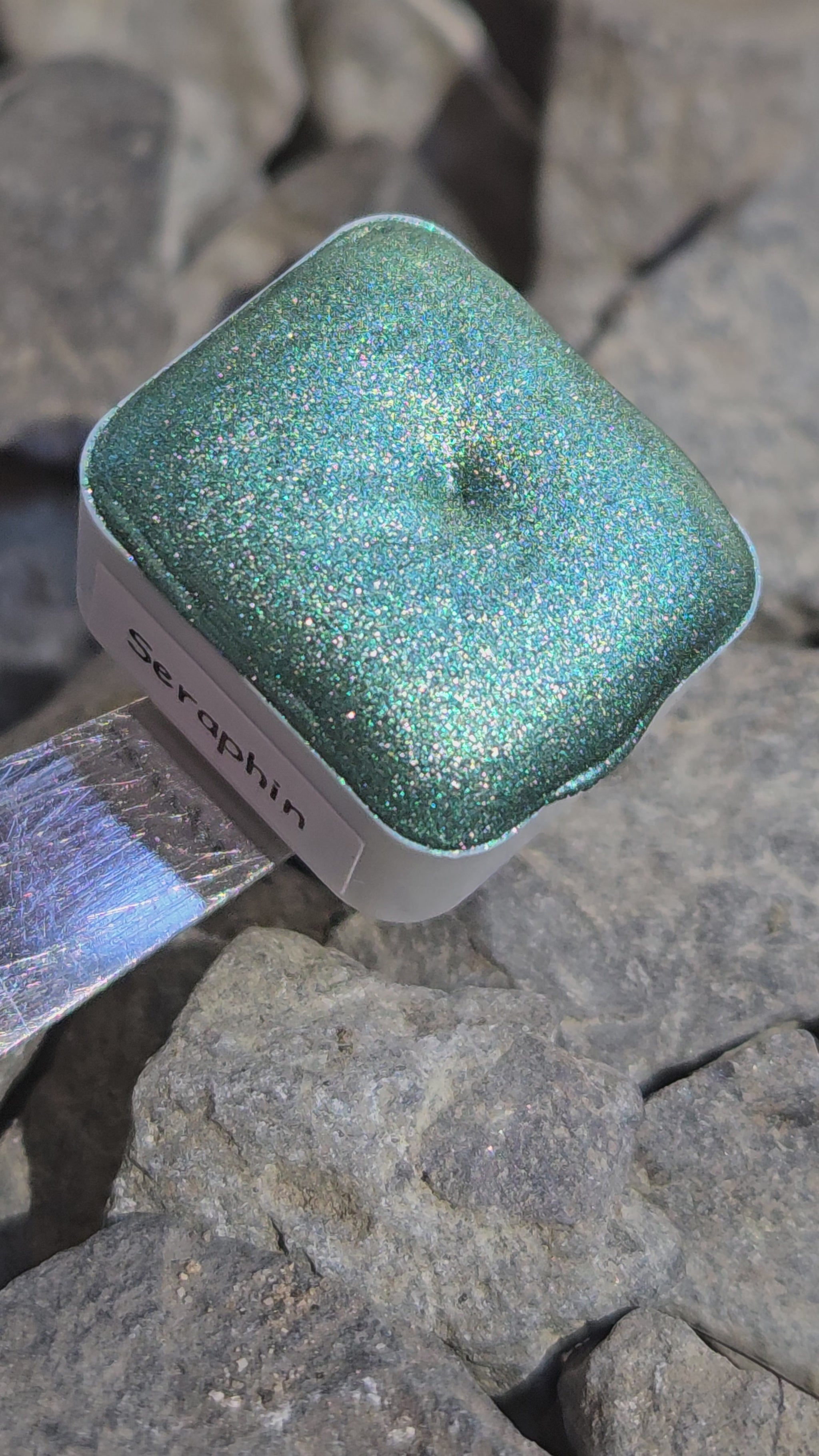 Handmade watercolor paint made with cosmetics-grade Pigments, Flakes, and glitters.