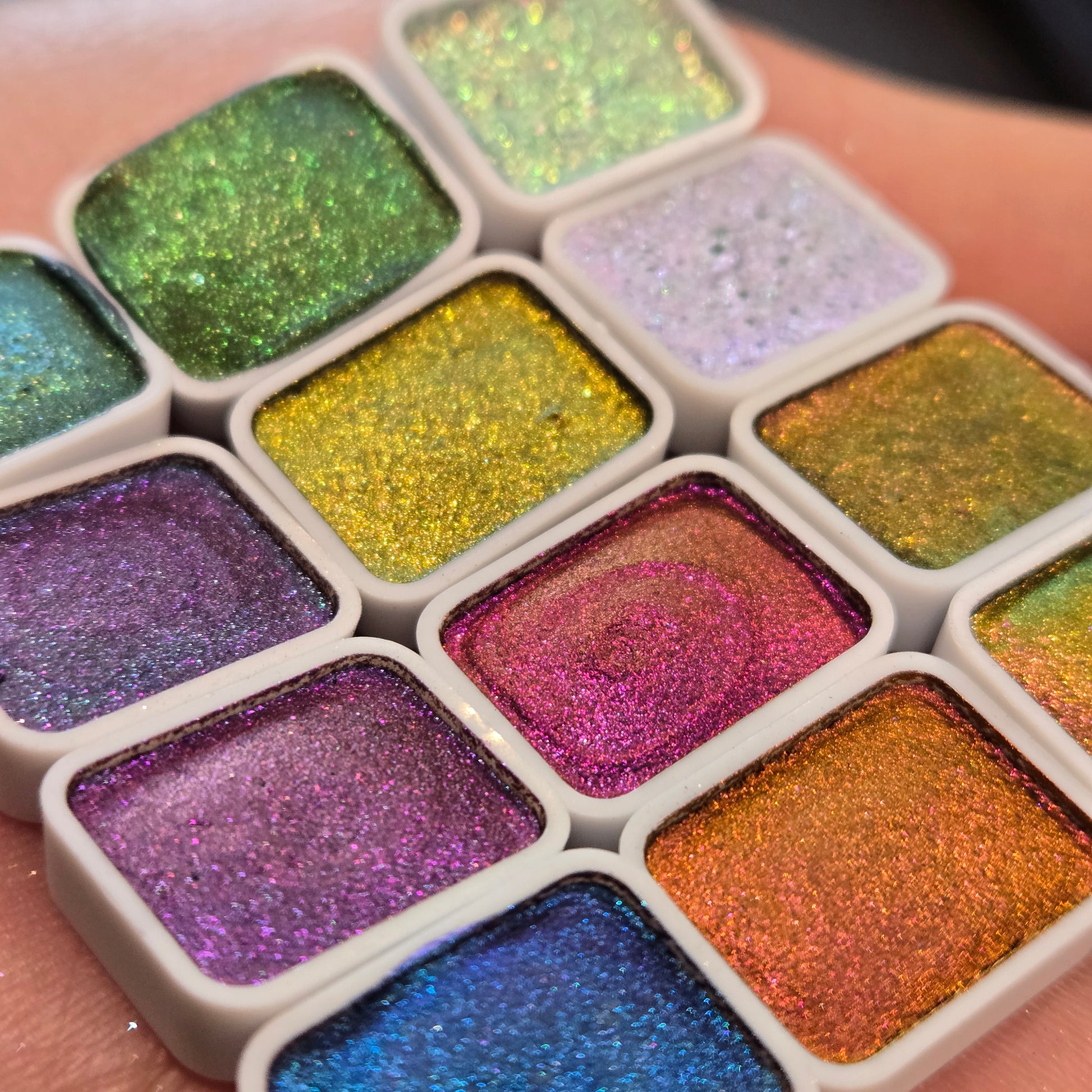 Shift Grab Bag 12 quarter pan Handmade Shimmer Metallic Colorshfit Watercolor Paints