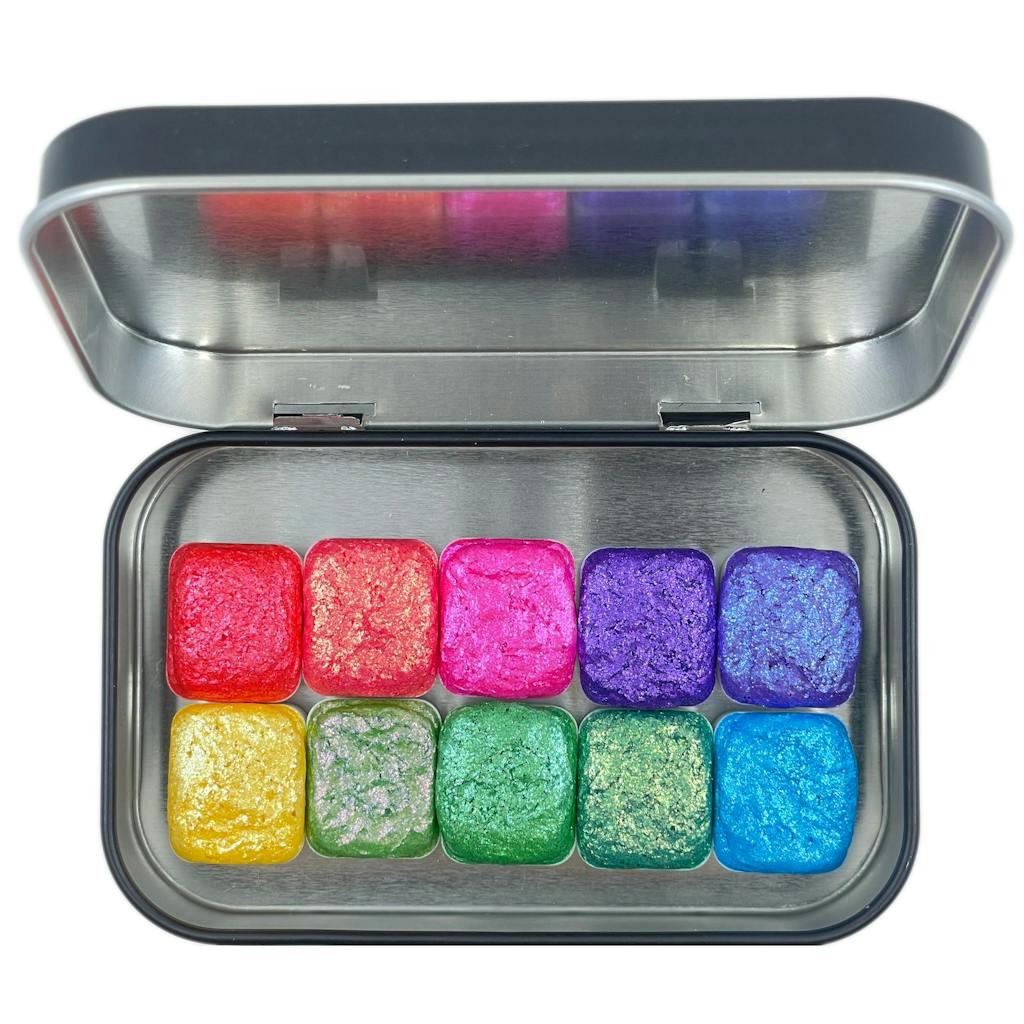 Last Chance! The Artist Set flakes mica Handmade Shimmer Sparkle watercolor paint half pans