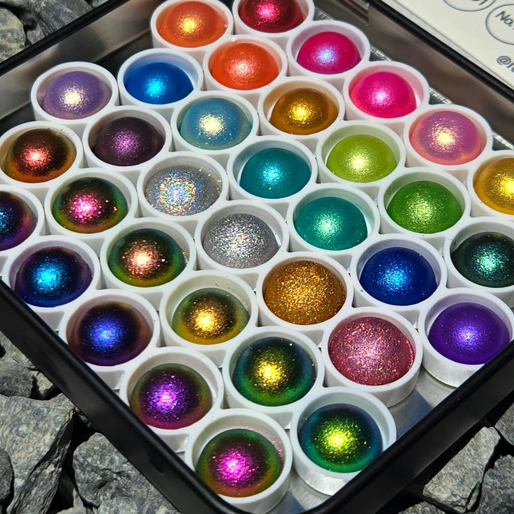 Product Information: Handmade watercolor paint made with cosmetics-grade Pigments, Flakes, and glitters.